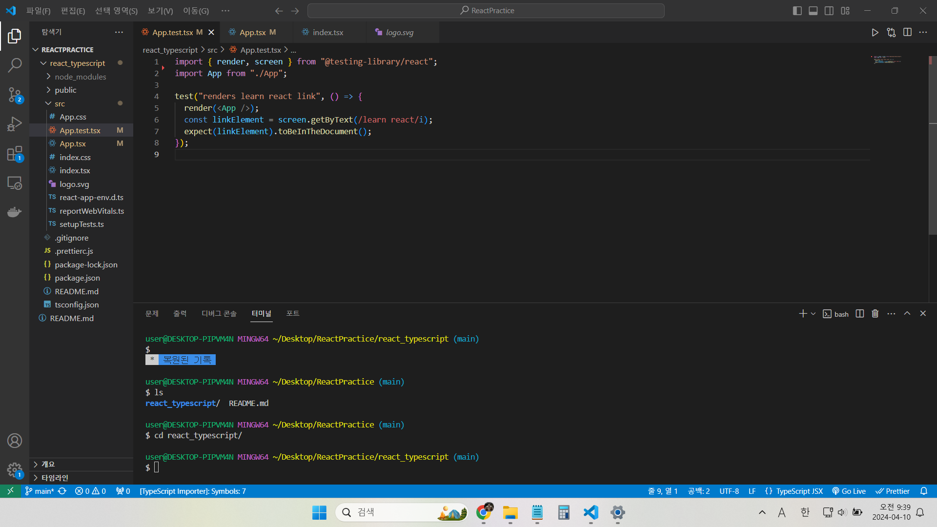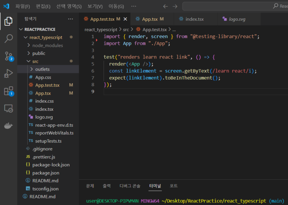 - 당연히 react-typescript가 있는 폴더로 이동한 다음 실행해야 한다.