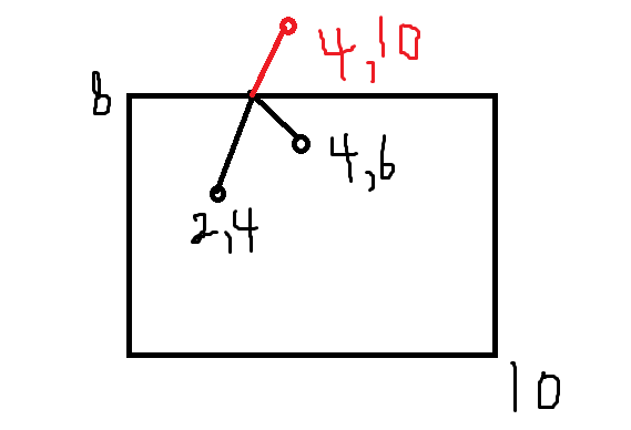 - 평행이 아닌 경우 벽 4개를 다 부딪혀본다고 생각한다.