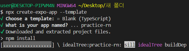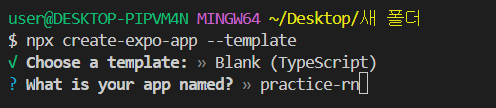 - 선택 후엔 이름을 적는데 practice-react-native 줄여서 practice-rn