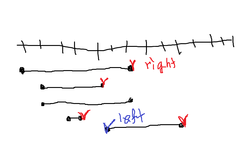 - answer를 1로 두고 (최소 하나의 단속카메라를 설치하기 때문) right의 값보다 cl값이 큰 경우 answer에 1을 더해준다.