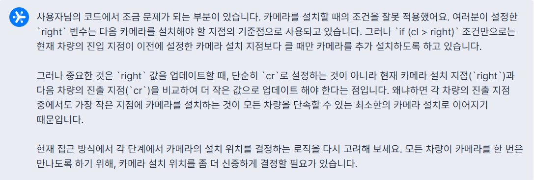 프로그래머스 [Lv. 3] 단속카메라 {언어 : JavaScript} [AI 코드 피드백 (Beta)] 본문