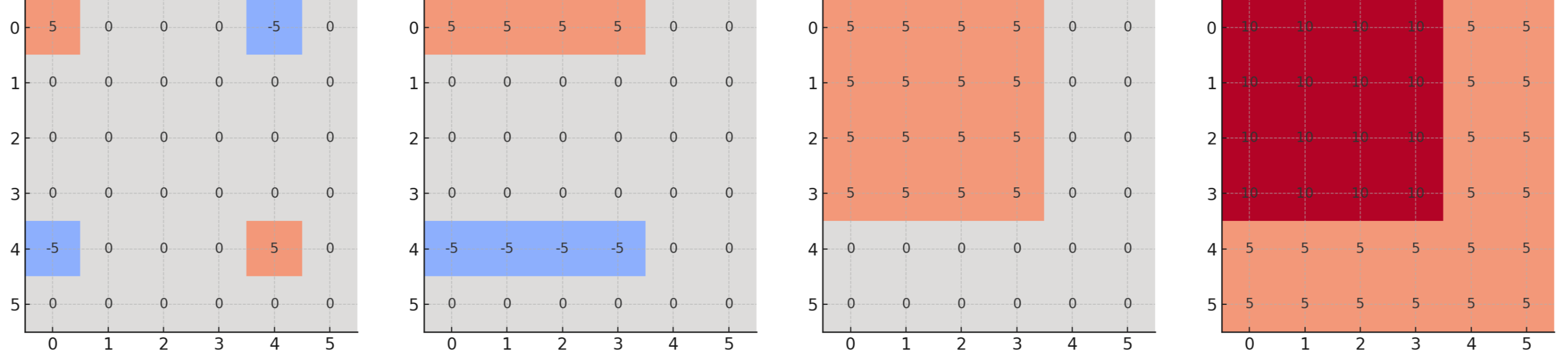 # 좌상부터 이어져서 우하에는 0이 되어야 하므로 + - - +