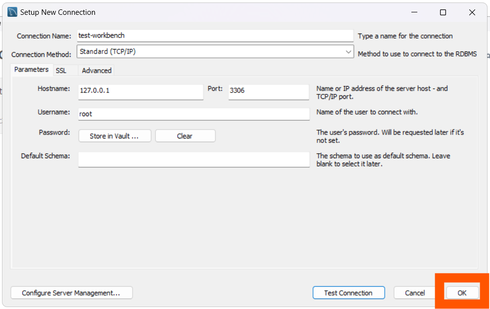 - 연결을 테스트 해보면 다시 비밀번호를 입력하라고 한다.