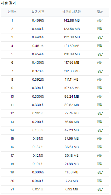 - 이를 해결하기 위해서 그냥 인덱스로 값을 찾기로 했고 결국 통과할 수 있었다.