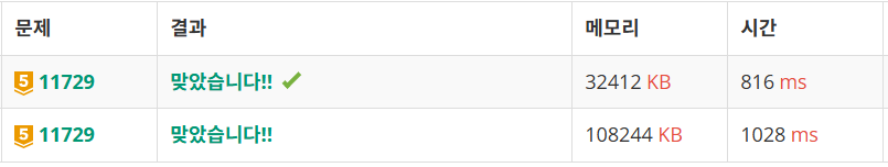 - 하노이탑은 재귀라기보단 수학 문제에 가까운 것 같다.