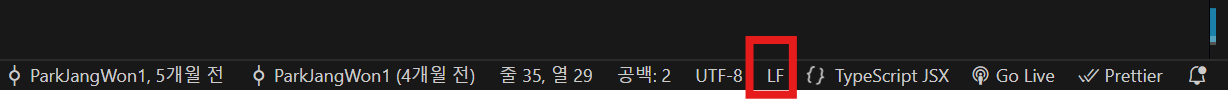 - 오른쪽 하단에 현재 줄 끝 문자가 표시된다 (예: CRLF 또는 LF).